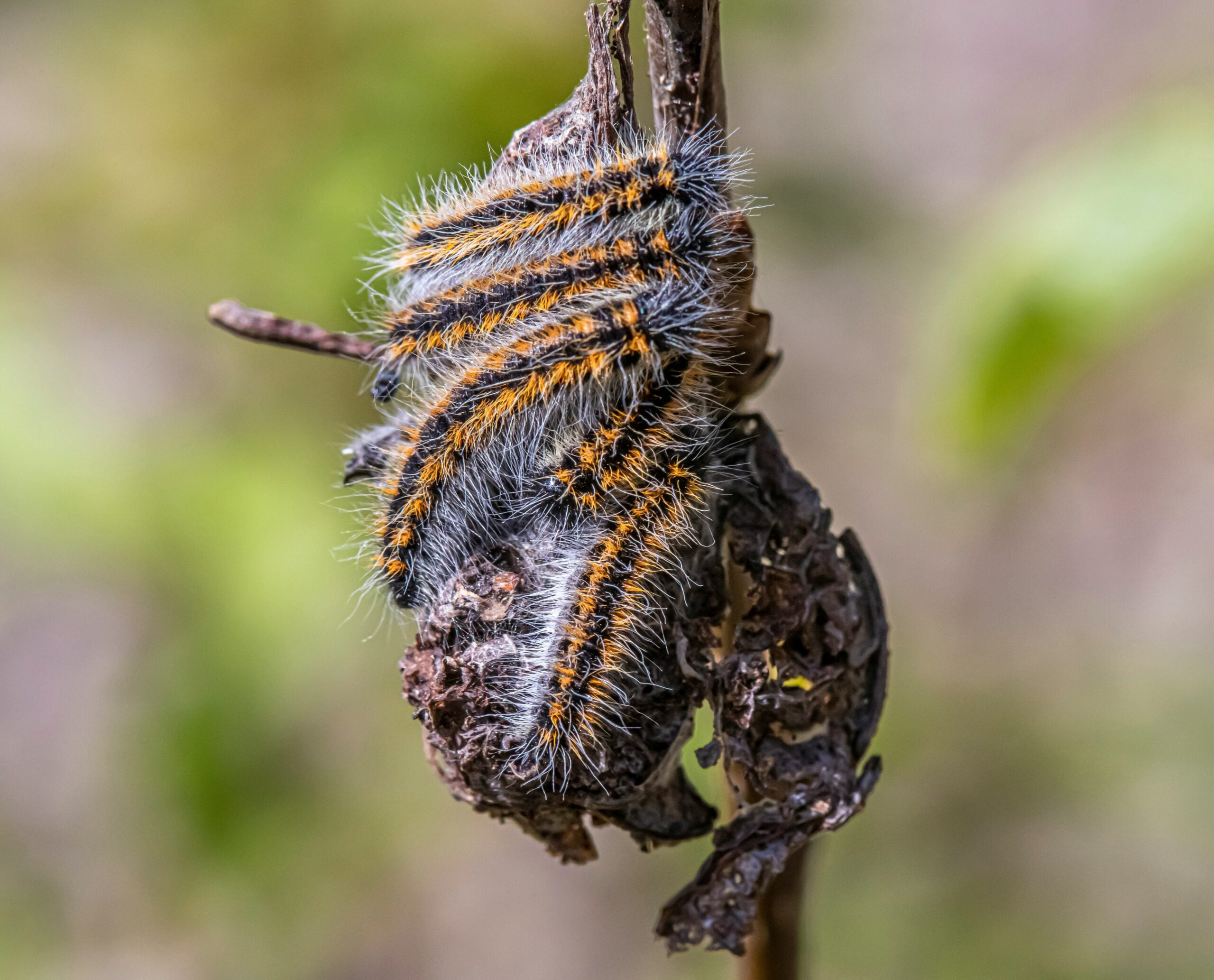 The caterpillars also seek shelter under bark or in leaf litter, where they can remain dormant through months of winter weather in temperate regions, emerging in spring ready to continue their development.