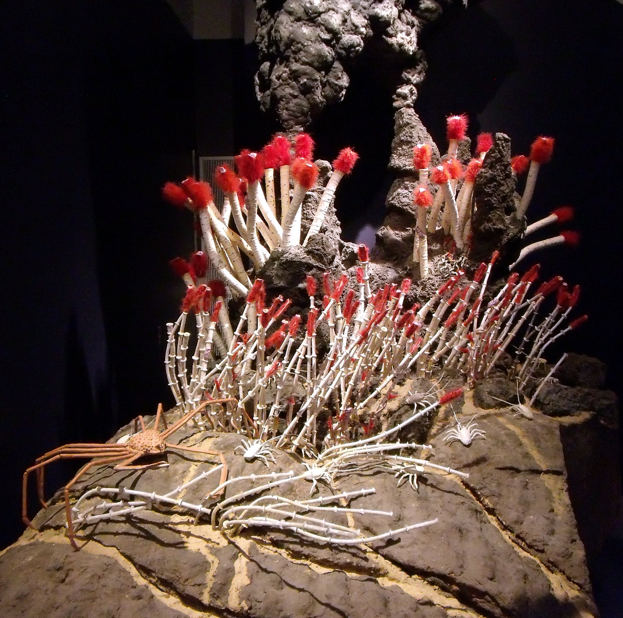 They cluster around hydrothermal vents where superheated water rich in hydrogen sulfide creates a unique ecosystem. Their bright red plumes filter nutrients from the water while their white tubes anchor them to the volcanic seafloor.