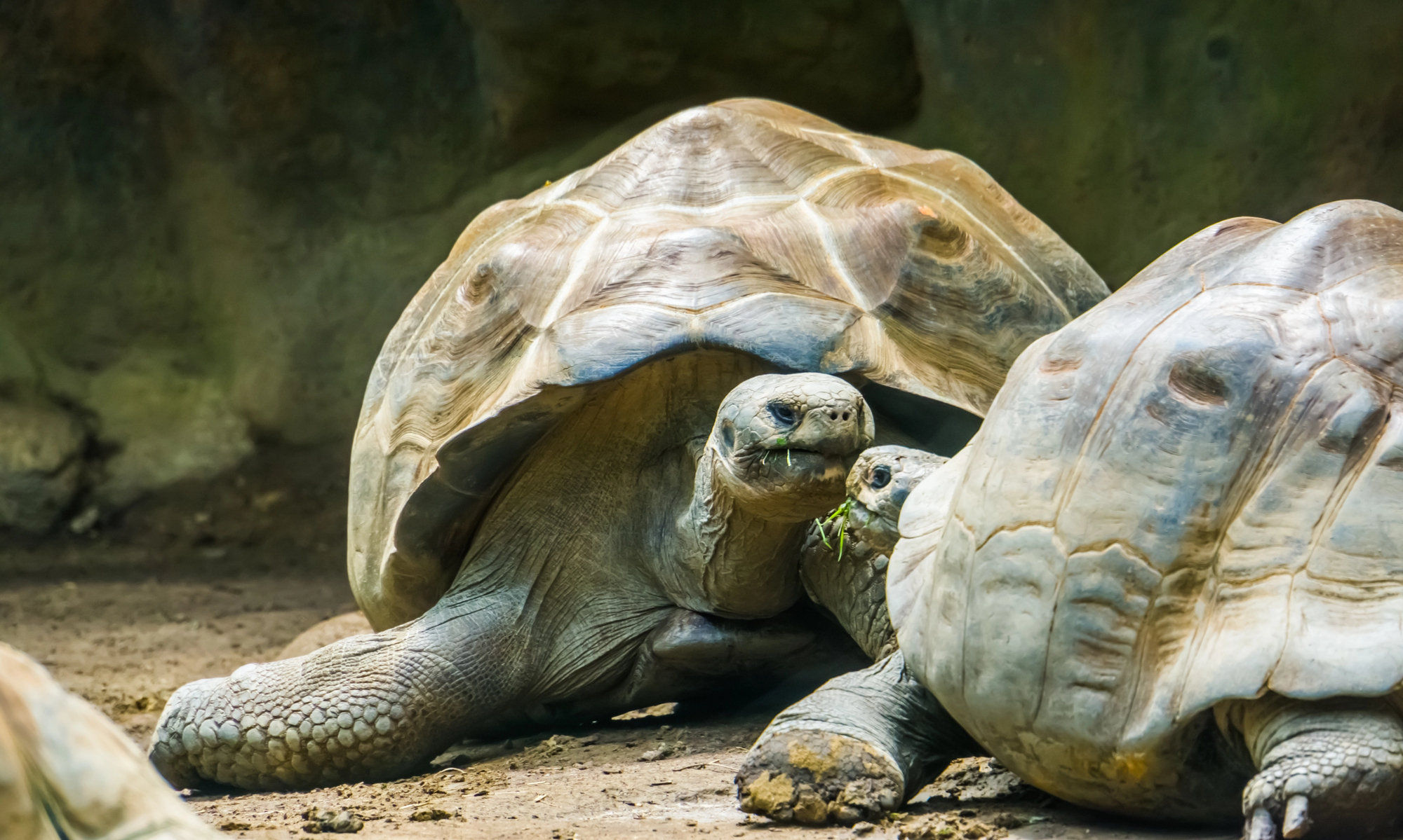 They often rest in volcanic mud wallows that provide natural sun protection and help regulate their body temperature. Different populations have evolved distinct shell shapes depending on the specific volcanic terrain of their home islands.