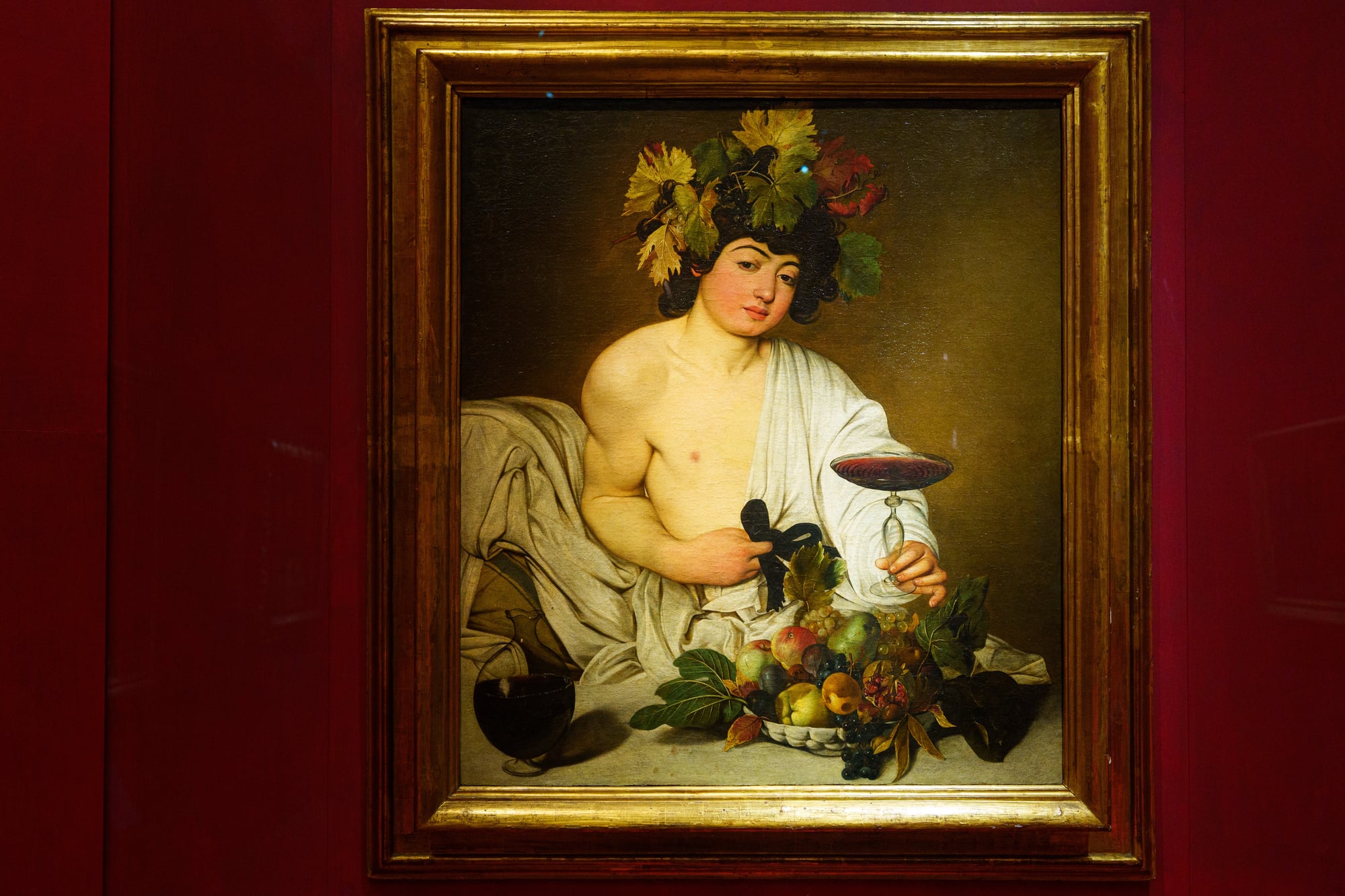Caravaggio’s 1596 painting of the Roman god of wine contains a tiny hidden self-portrait that wasn’t discovered until the 20th century. In the carafe of wine on the table, Caravaggio painted his own reflection in miniature detail.
