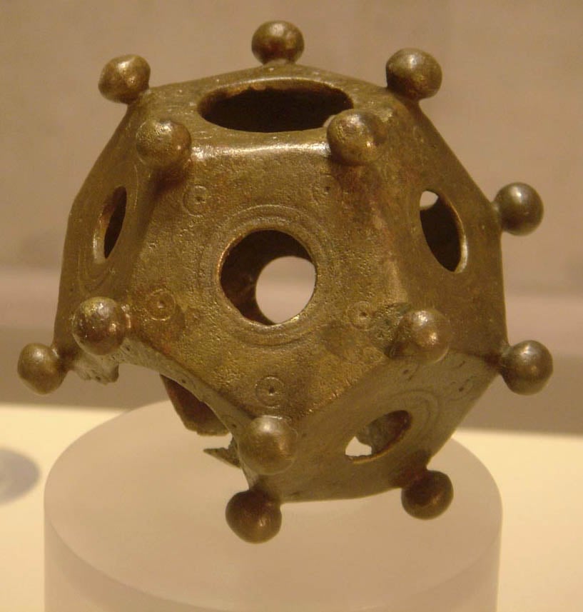 These objects have twelve faces, twelve knobs, and absolutely no clear purpose. Romans made them between 100 and 300 CE from bronze or stone, but left no written records explaining what they were for.