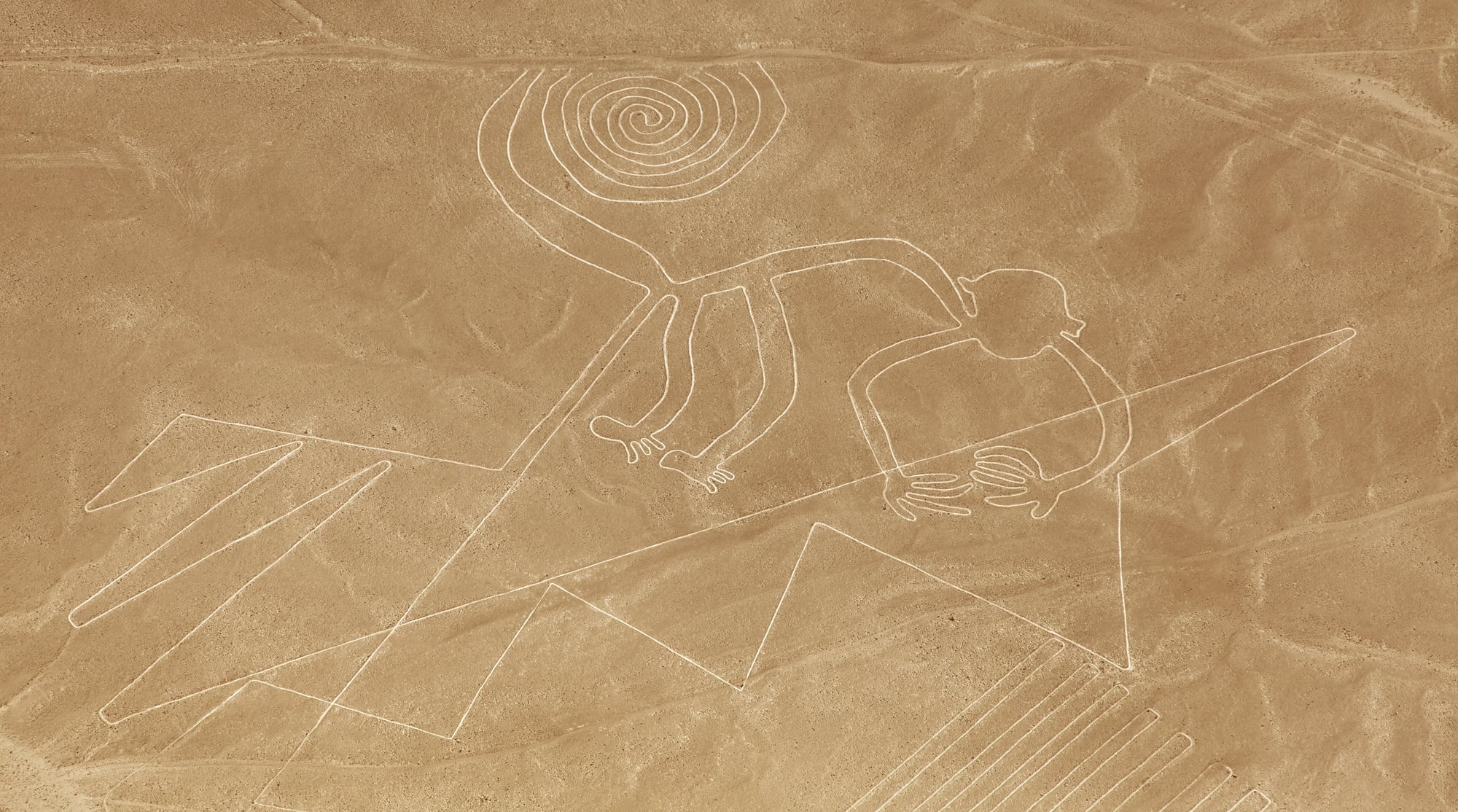 Massive geoglyphs carved into the Peruvian desert depict animals, plants, and geometric shapes that are best viewed from the air—which is odd considering they were created between 500 BCE and 500 CE. Recent research using AI has uncovered over 300 new geoglyphs in the region, showing that discoveries are still being made.
