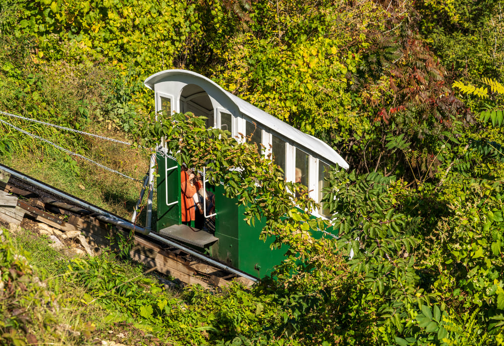 Though fire destroyed the original structure, Graves rebuilt it and eventually opened it to the public for a fee. Today, the 296-foot funicular railway remains operational as a tourist attraction, charging visitors a few dollars for the scenic 60-second ride.