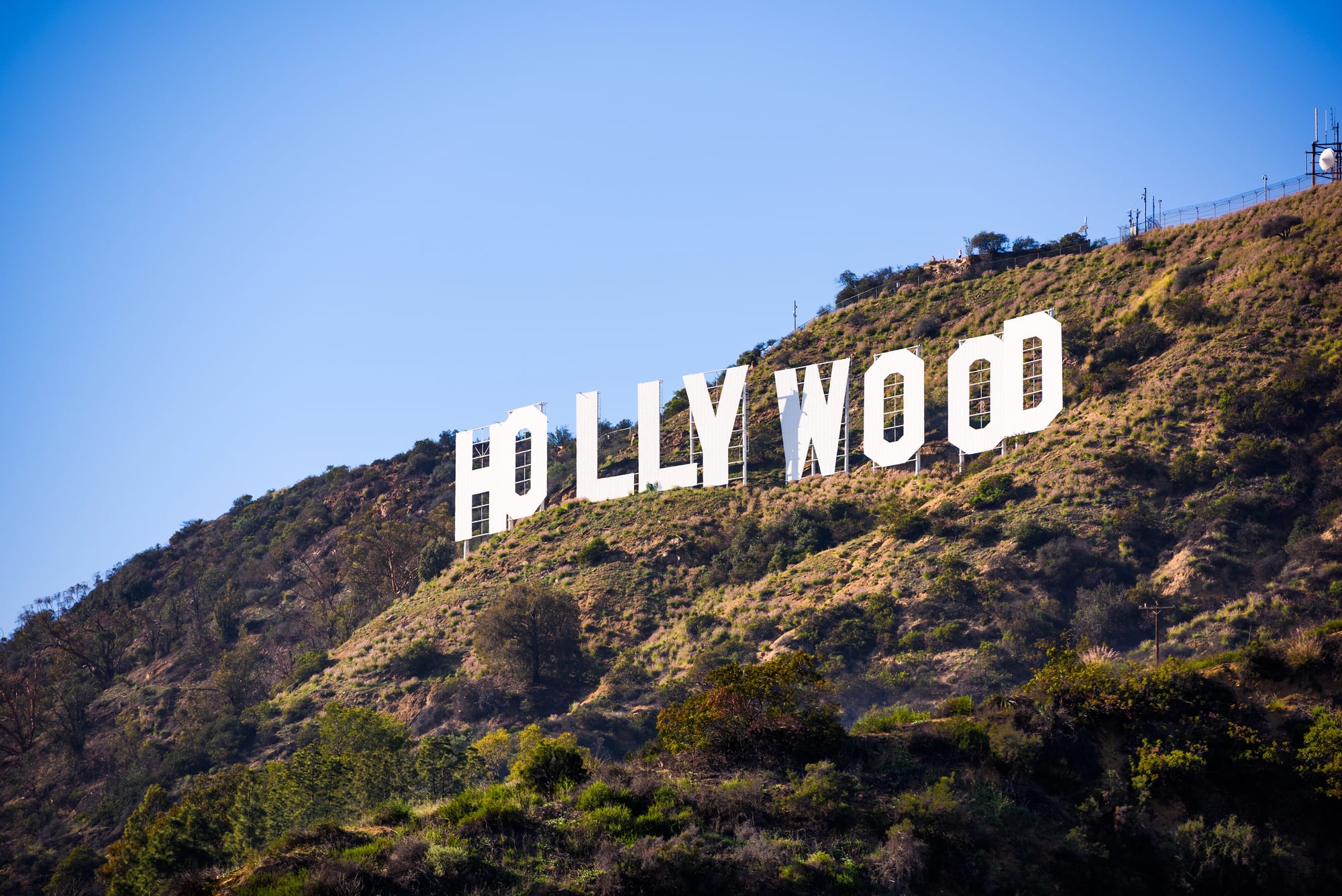 The hillside image of the Hollywood Sign framed against clear blue sky distilled Los Angeles into a single promise: entertainment. Originally erected in 1923 as a real estate advertisement reading ‘Hollywoodland,’ the sign evolved into a cultural beacon.