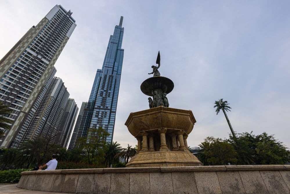 Vietnam’s tallest building reaches 1,513 feet (461 meters) and resembles a bundle of bamboo shoots reaching skyward. This symbolic design reflects traditional Vietnamese imagery while creating a thoroughly modern silhouette on Ho Chi Minh City’s developing skyline.