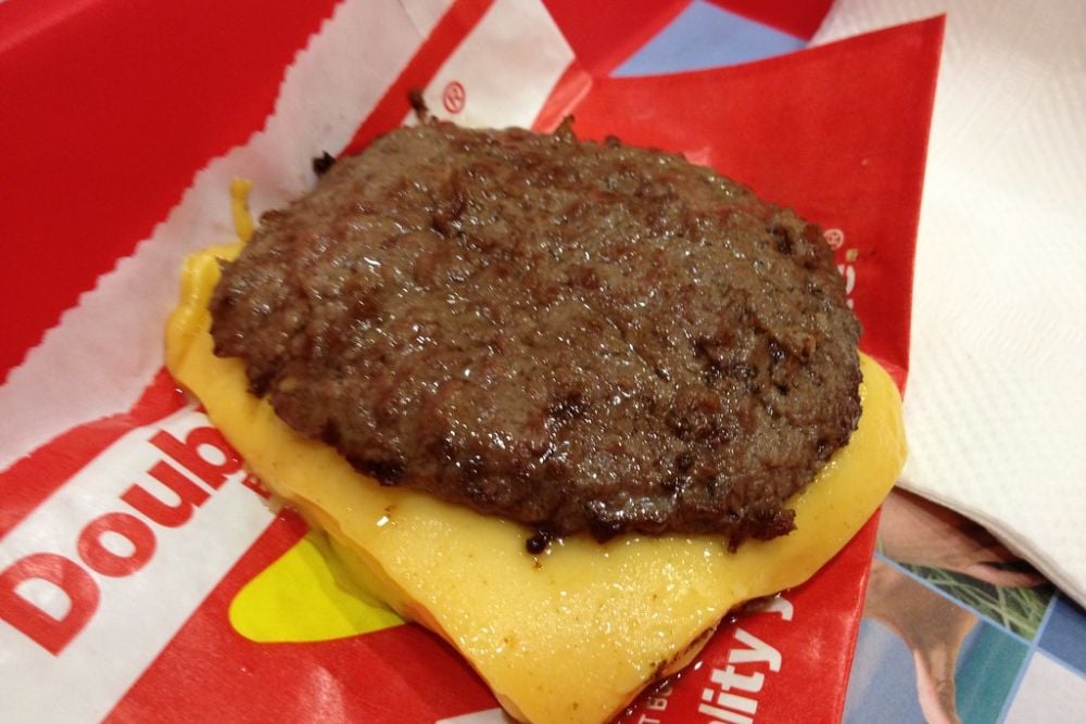 Also from In-N-Out, the Flying Dutchman strips away everything except what matters most to protein lovers. You get two beef patties with two slices of cheese melted between them, and that’s it—no bun, no vegetables, no condiments.