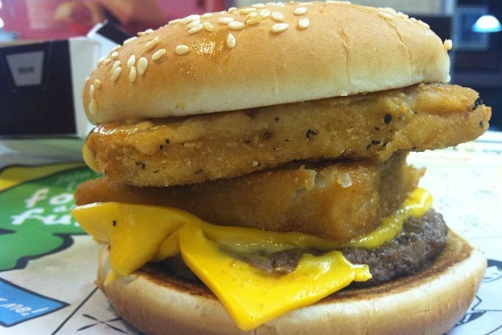 This legendary McDonald’s secret item combines three of their most iconic sandwiches into one epic creation. It involves stacking a beef patty from a Big Mac, a fish fillet from a Filet-O-Fish, and a chicken patty from a McChicken all into one towering burger.