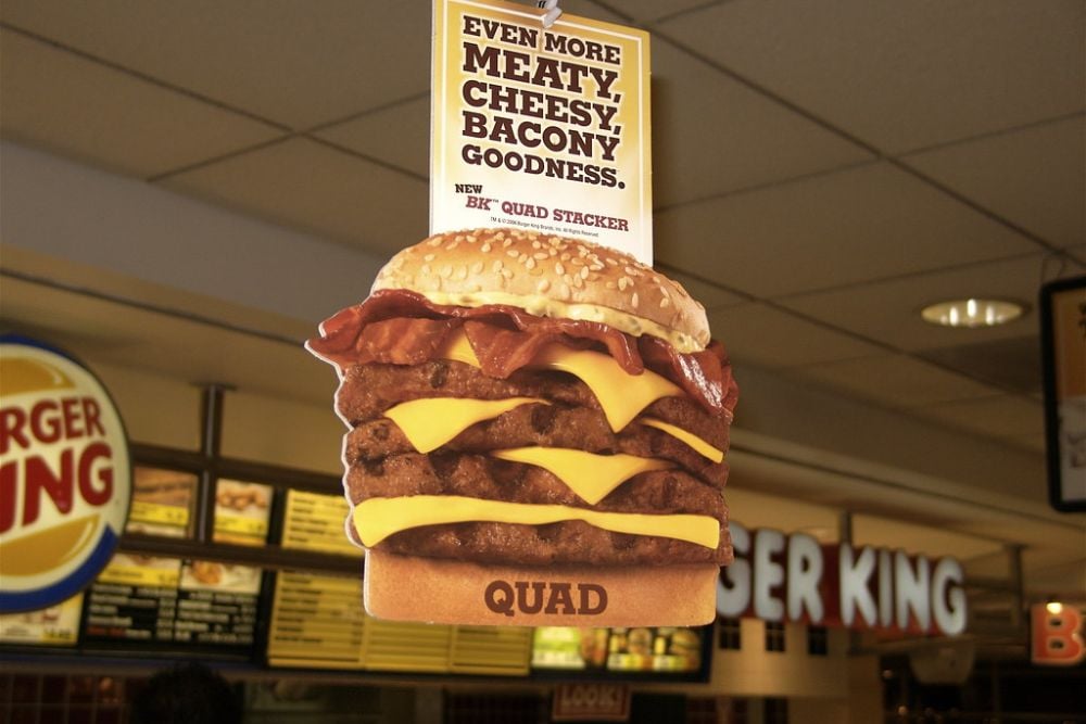 Wendy’s will stack four beef patties into one towering burger if you ask nicely and they have the ingredients available. It’s similar to their old Quad Baconator, but you can customize the toppings however you want.