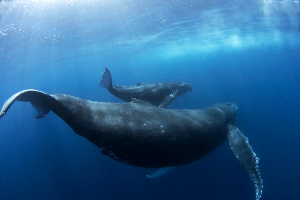 Female humpbacks and calves make different sounds throughout the year, including grunts, groans, and cooing-like noises used for everyday communication.