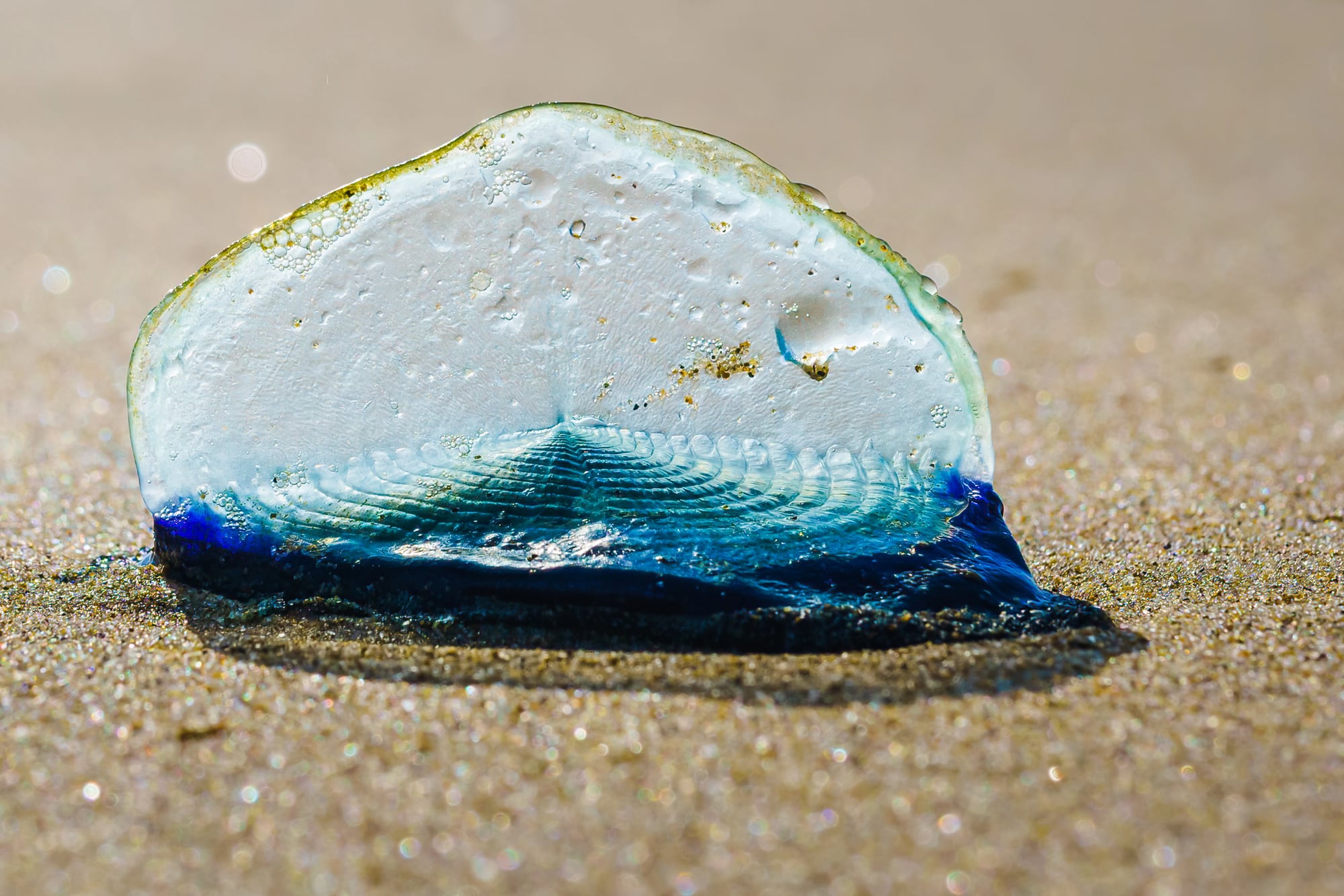 These bizarre creatures aren’t technically jellyfish but close relatives that look like tiny sailboats complete with transparent sails sticking up from their bodies. Wind-powered sailors drift across ocean surfaces in massive fleets, occasionally washing ashore in huge numbers when storms blow them toward land.