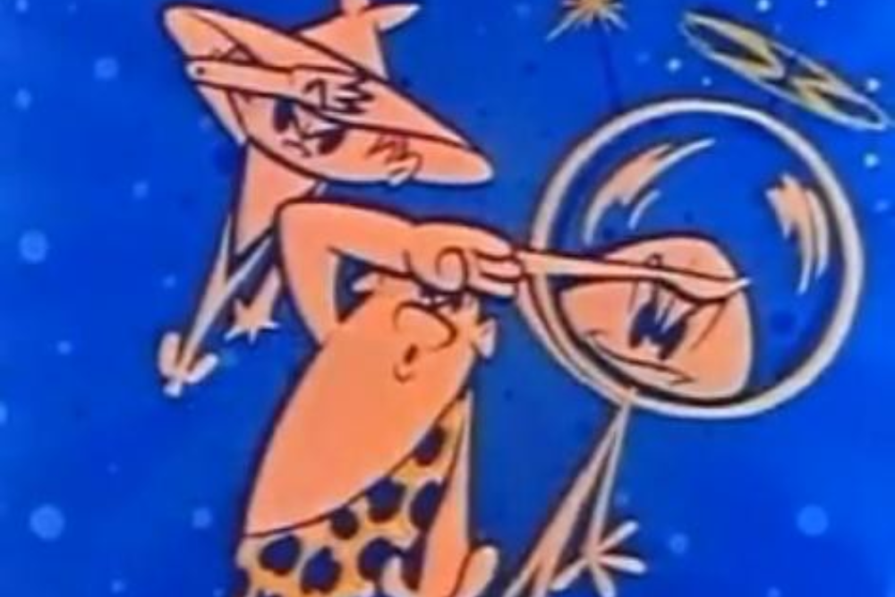 TV’s first color cartoon series starred an alien deputy from planet Futura. This tiny space guardian—no taller than a bowling pin—protected Earth alongside Squeek (a puppet from outer space) and Scratch (a caveman thawed from an iceberg).