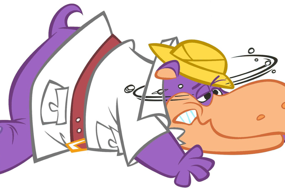 A purple hippopotamus traveling through time in a flying sailboat called the Wayback Machine? Makes perfect sense. This rotund explorer – accompanied by his monkey friend So-So – visited historical periods from ancient Egypt to medieval England.