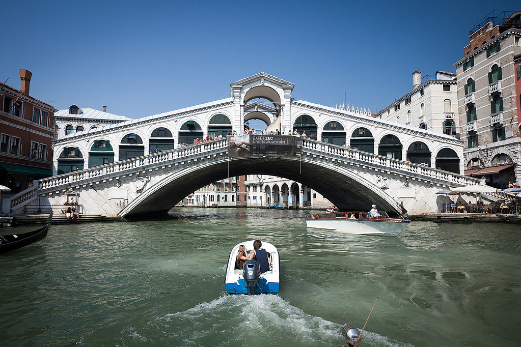 For most of Venice’s history, the Rialto Bridge was the only way to cross the Grand Canal on foot. Before the current stone structure was built, the crossing was a wooden drawbridge — paintings and engravings from the 14th and 15th centuries show a low, flat structure with a moveable central section to let tall-masted boats through.