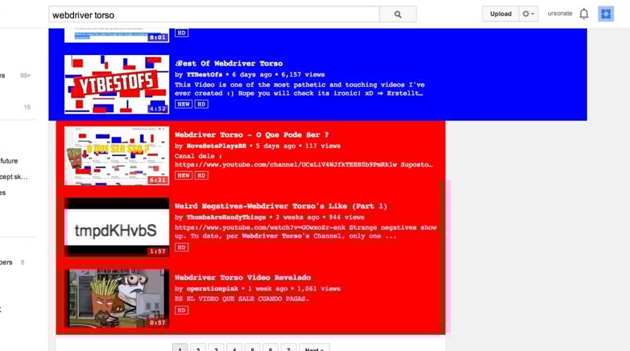 Someone had been uploading thousands of videos to YouTube consisting of nothing but colored rectangles and electronic beeps. The channel “Webdriver Torso” posted these bizarre clips every few minutes, 24 hours a day, for months.