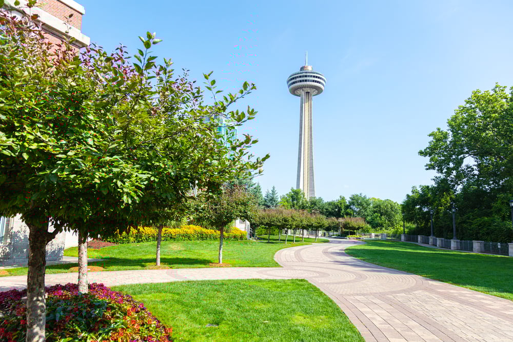 Overlooking Niagara Falls, the Skylon Tower’s rotating dining room offers dramatic views of both the American and Canadian falls. The restaurant completes a full rotation every hour, giving diners constantly changing perspectives of one of the world’s most famous natural wonders.