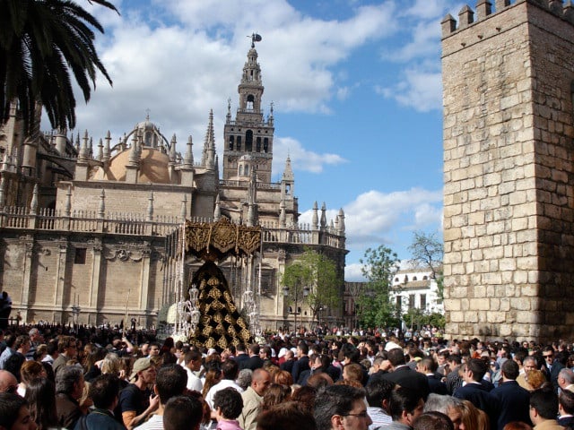 Spectators throw flower petals, someone breaks into spontaneous flamenco singing, and the whole city becomes part of the performance.