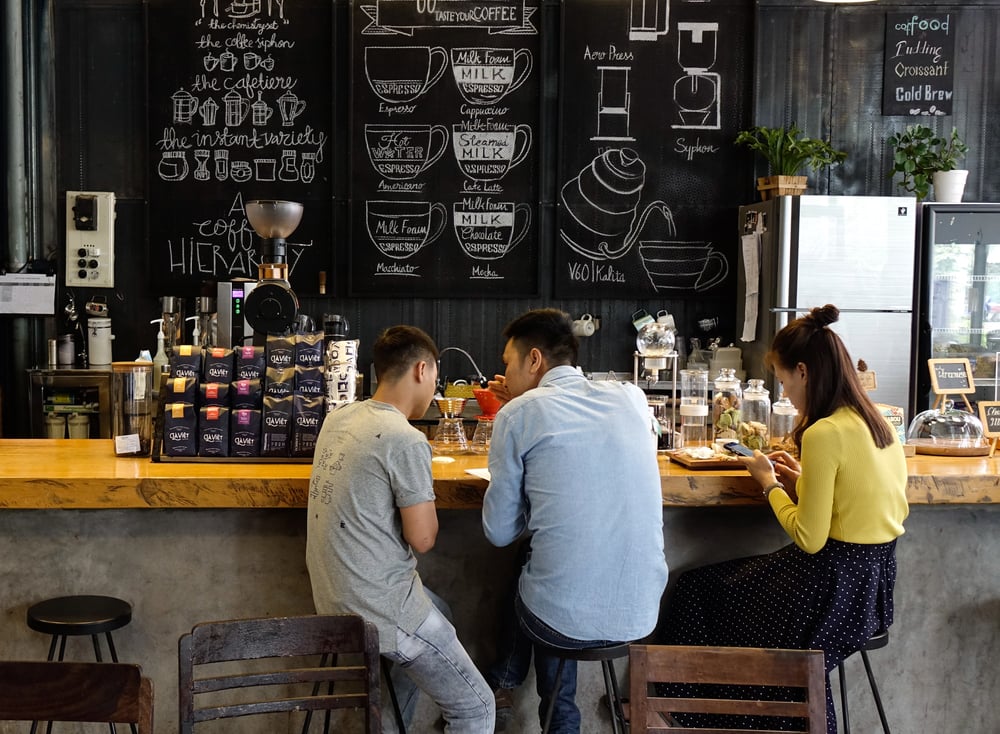 Premium coffee shops carefully design atmospheres with moderately uncomfortable seating to prevent extended stays that reduce table turnover. The background music is often played at volumes that discourage deep conversation while maintaining an energetic ambiance.