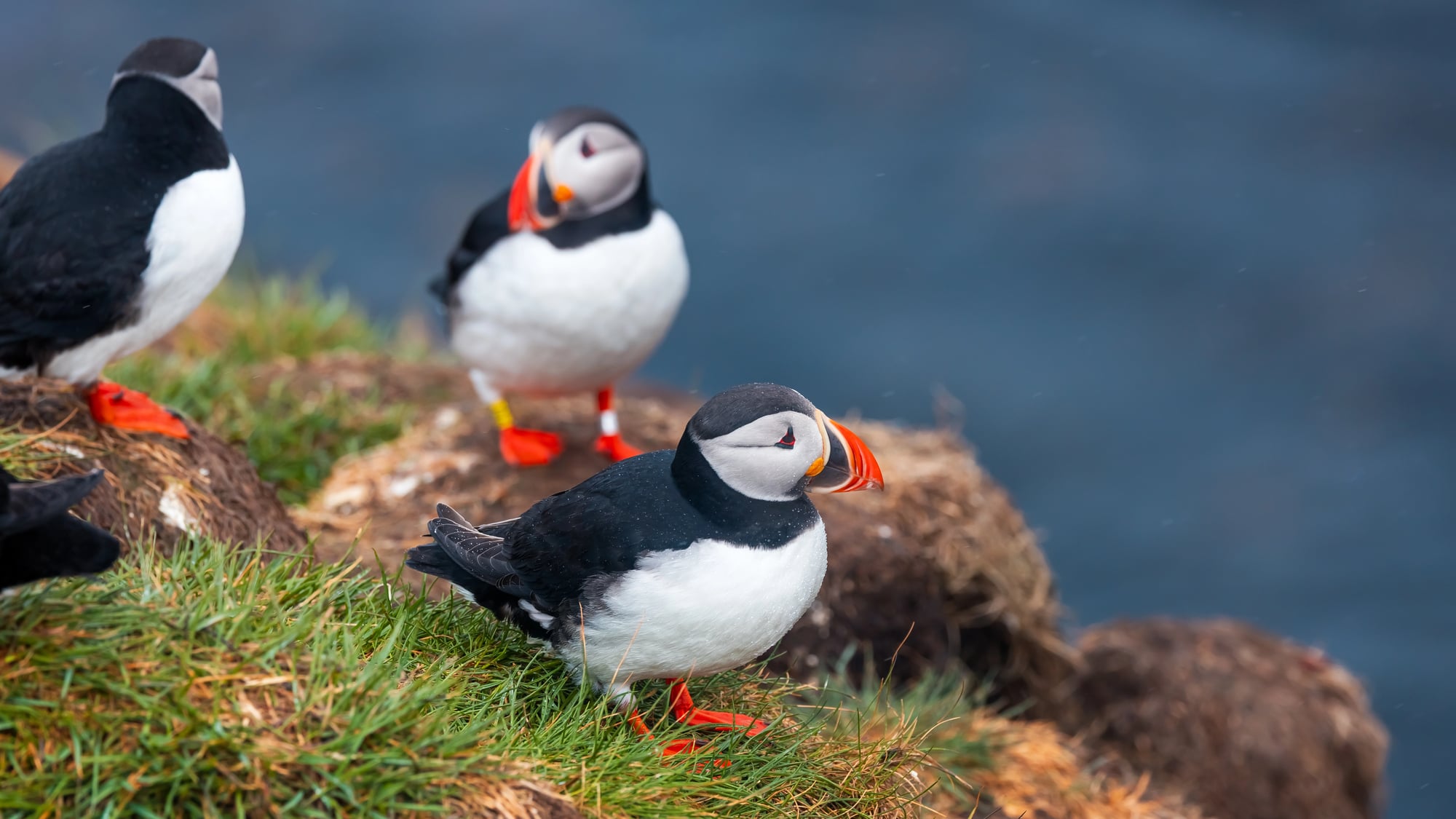 Puffins approach nest-building like miners approaching a new shaft. They dig burrows that stretch three feet deep into clifftop soil, carving out tunnels with their beaks and claws until they reach a suitable chamber for their single egg.