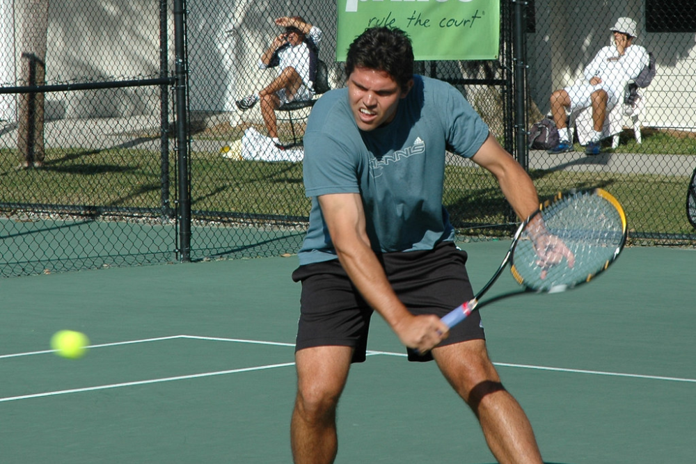 Standing tall, he uses his build to send the tennisball down at a sharp angle. This shot helped him briefly stand out in a highly competitive field.