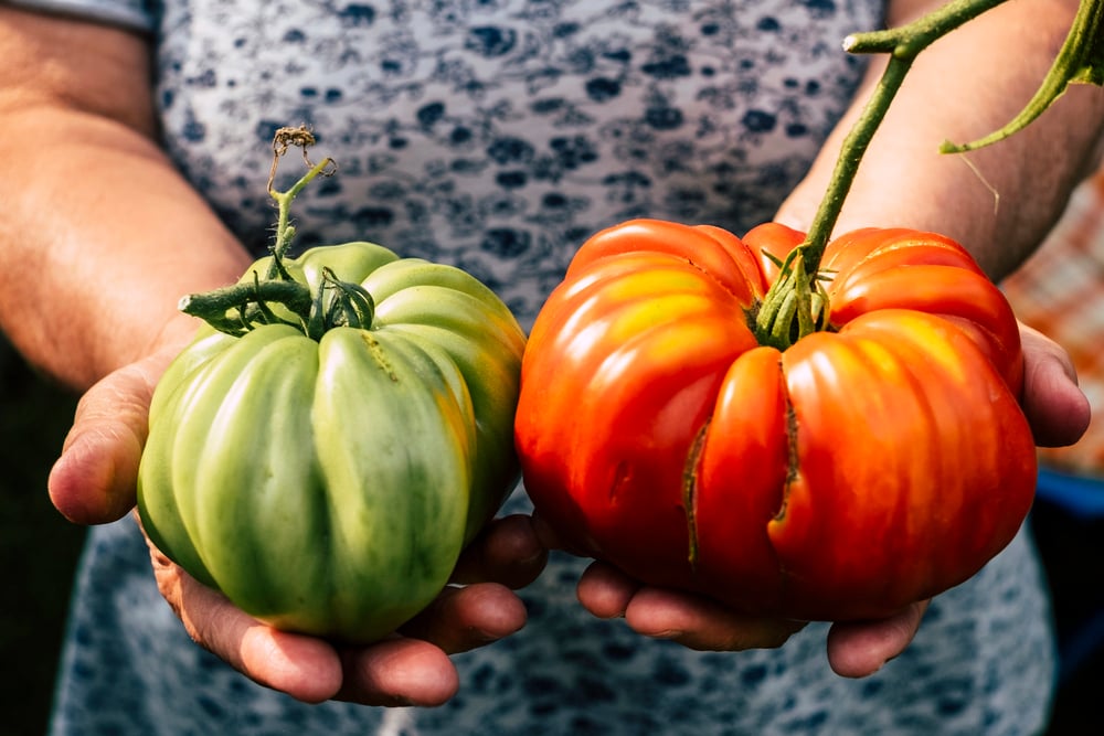 You’ll find ribbed, lumpy, green-streaked, deep purple, and orange tomatoes sold casually as standard produce.