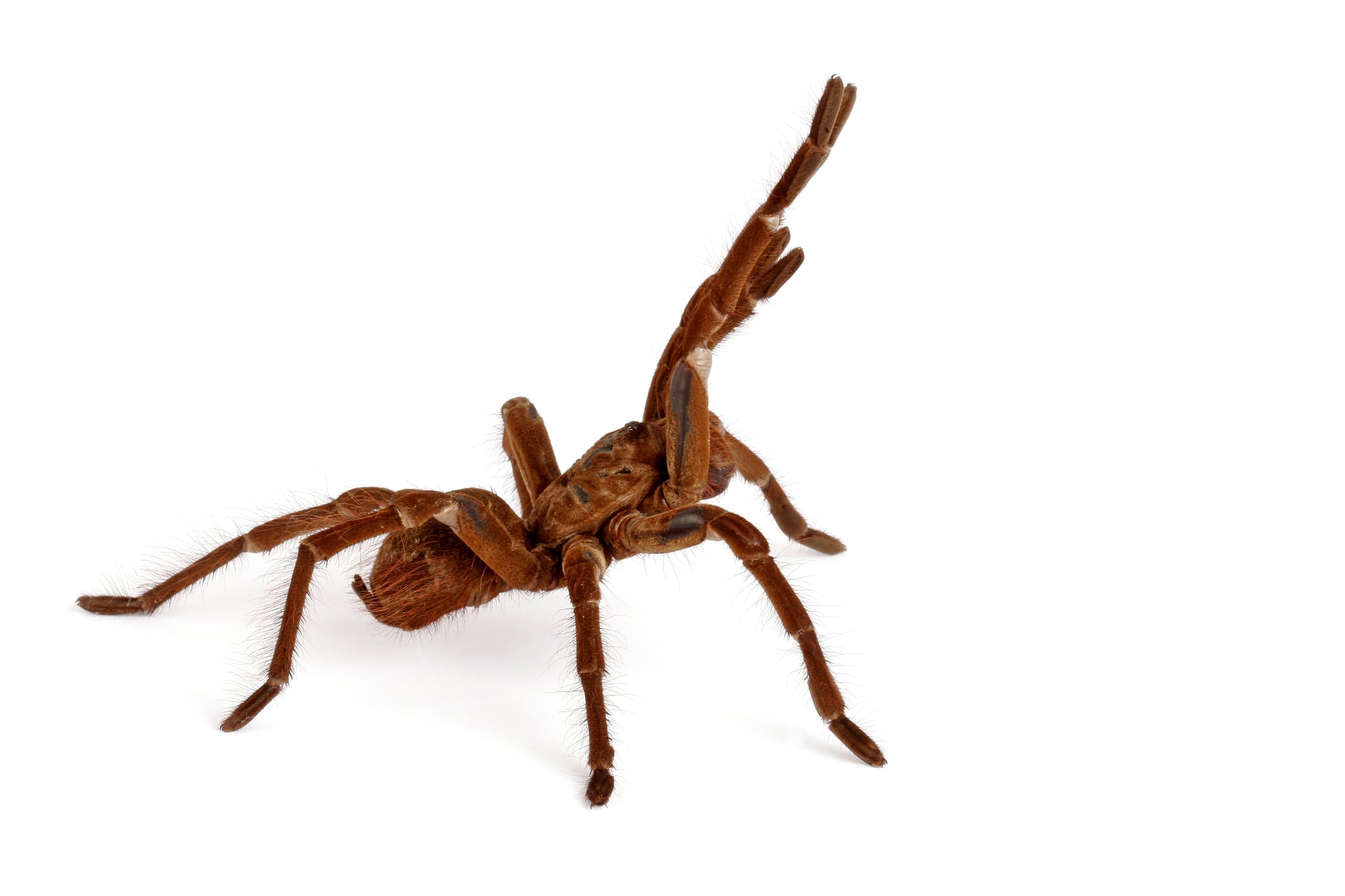Technically not a true spider, the Camel Spider (Solifugae) still earns a spot here. These desert dwellers can grow to 6 inches and use their massive jaws to hunt insects and even small lizards.