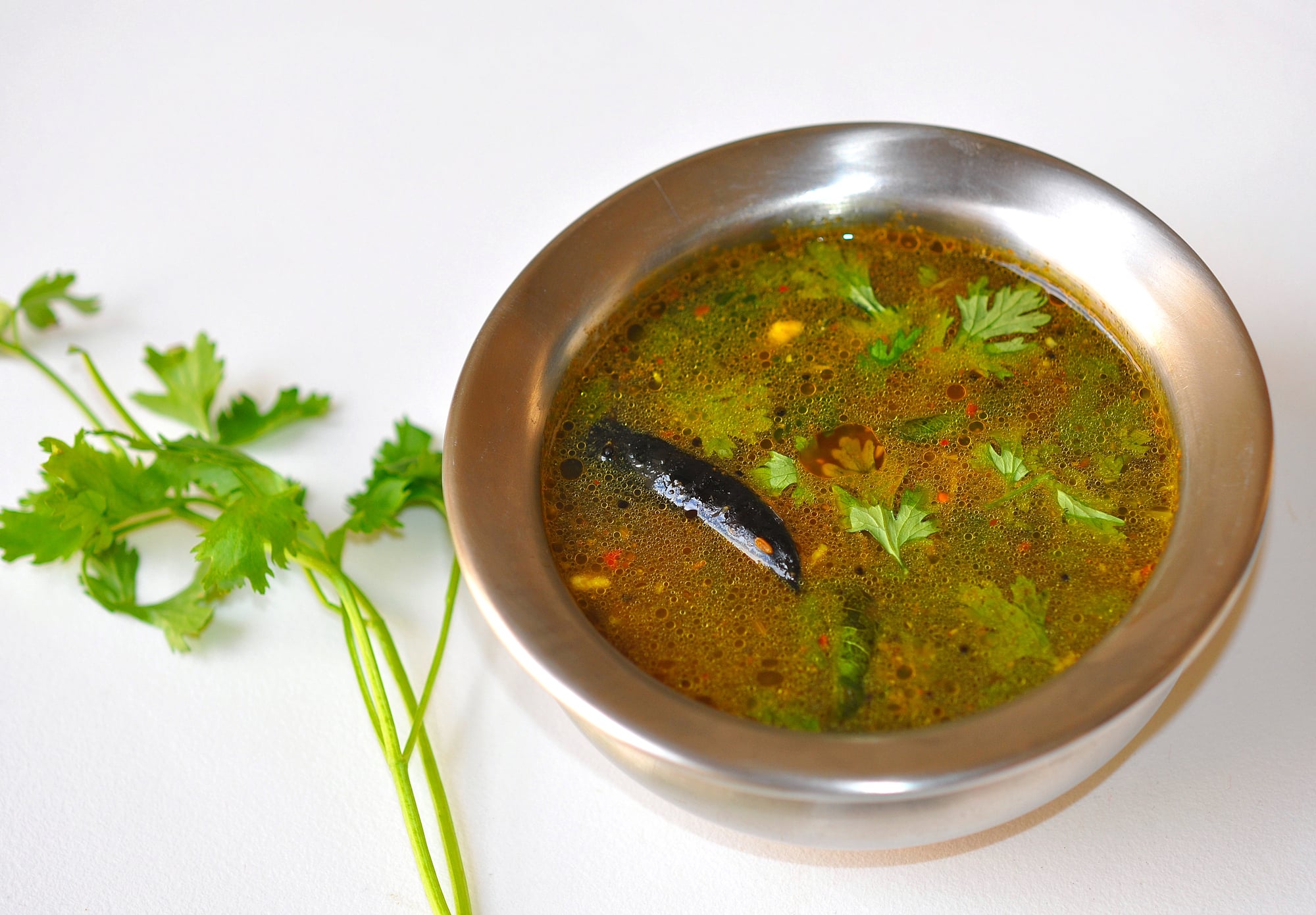 South Indian rasam operates as a flavorful soup course with traditional uses. Tamarind provides the sour base, balanced by jaggery’s sweetness and tempered with mustard seeds, curry leaves, and hing (asafoetida).