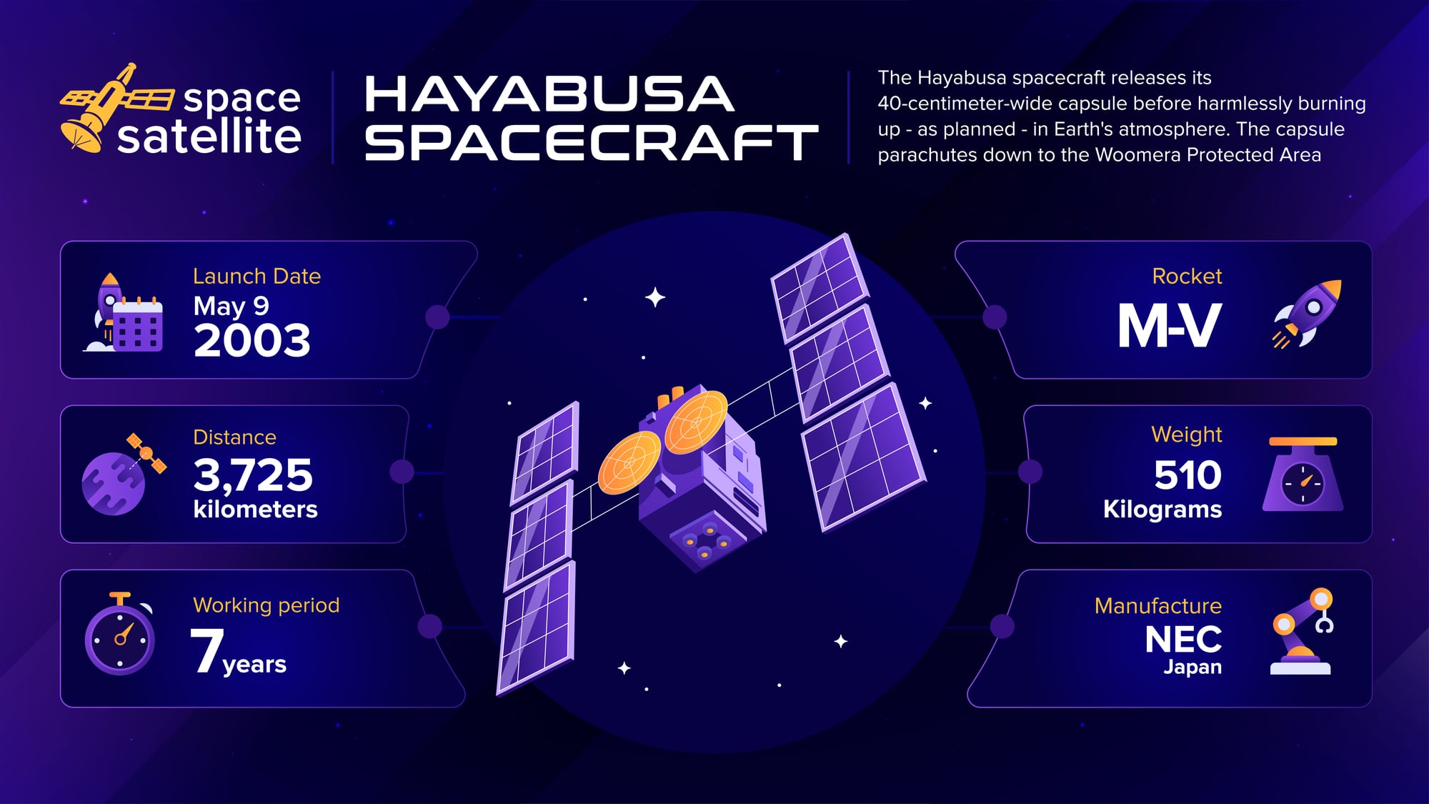 NASA’s Stardust performed an astonishing feat of cosmic collection and delivery. Launched in 1999, it flew through the dust cloud surrounding Comet Wild 2, capturing tiny particles in a substance called aerogel before sending its precious cargo back to Earth in 2006.