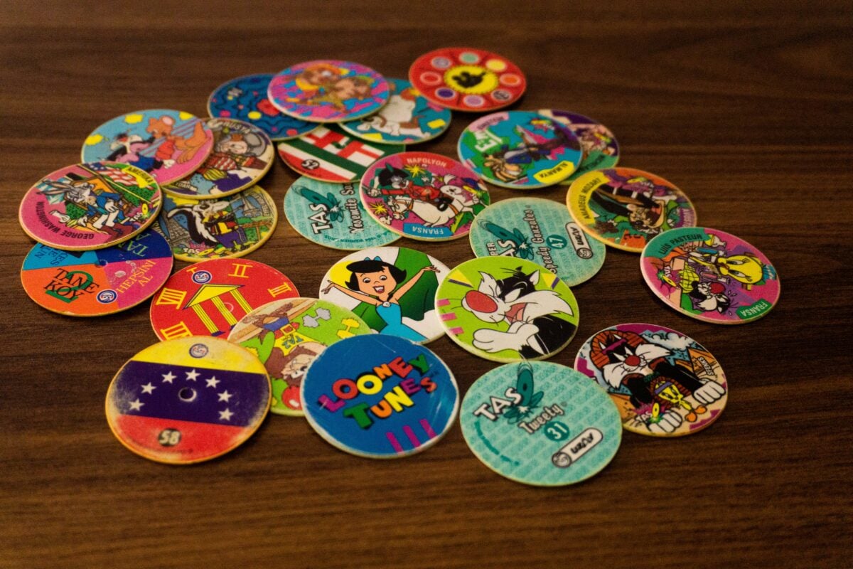 The holographic and metallic versions are most sought after, especially if they’re still in their original tubes. Pogs were essentially gambling for elementary school kids—a game of skill and chance that involved winning your opponent’s pieces.