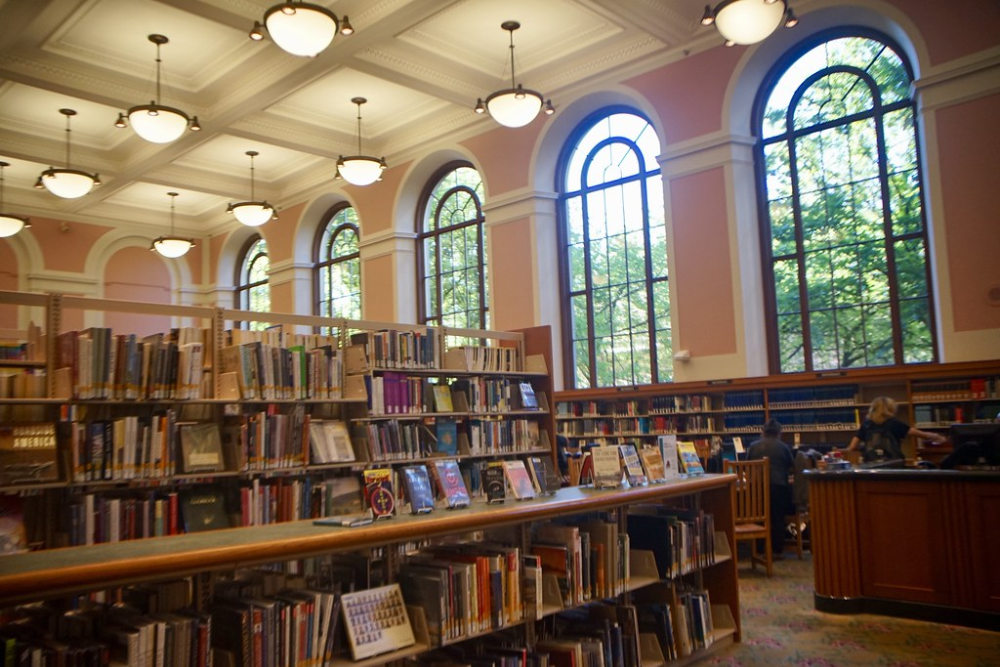 While technically an academic library, PSU opens many services to the community, including a collection of camping gear that students and residents can borrow for outdoor adventures. They also loan out presentation equipment and have maker spaces with textile equipment.
