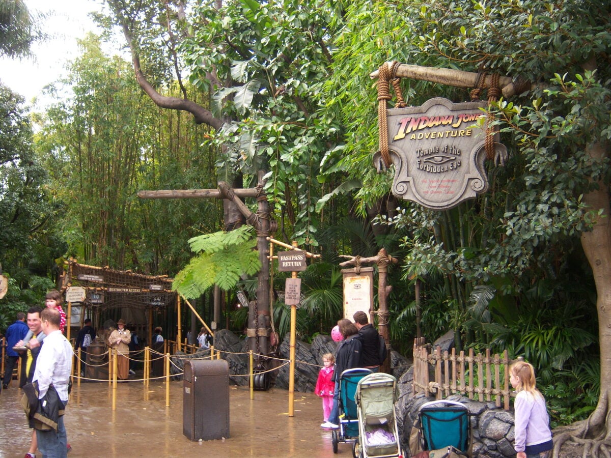 Indiana Jones Adventure elevated queue design into part of the attraction. Hidden details and atmospheric effects prepared guests for a rugged expedition.