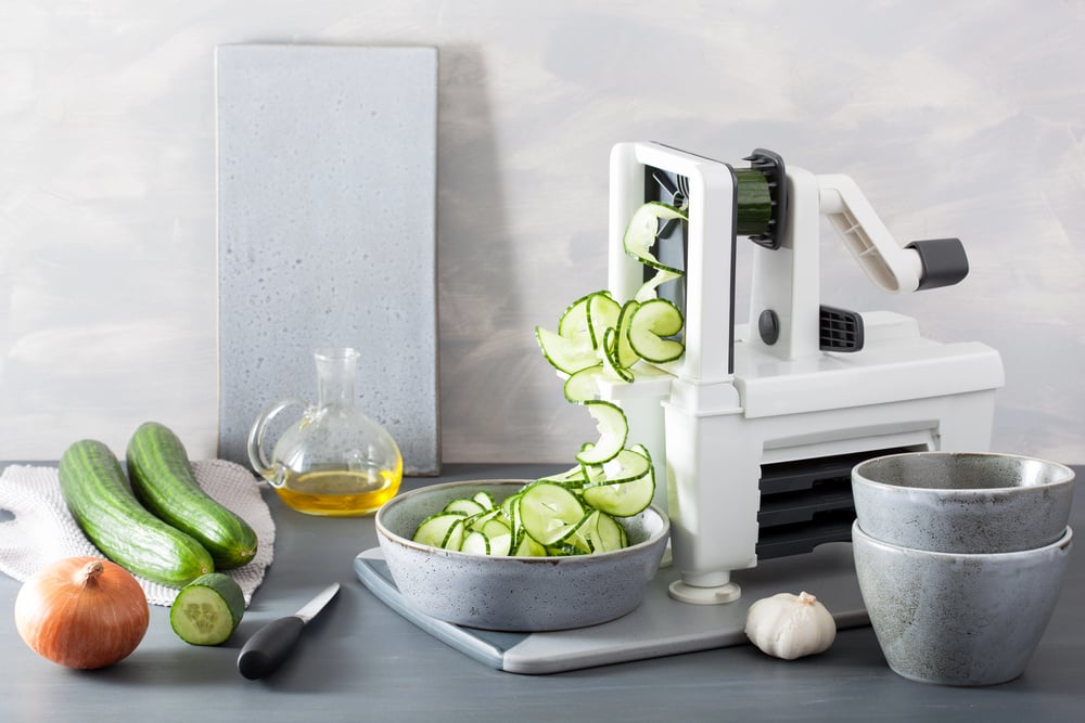 Made famous through relentless television advertising, this mechanical slicer promised consistent vegetable cuts through a rotating dial system. Its popularity in the 1970s reflected the growing American interest in consistent food presentation.