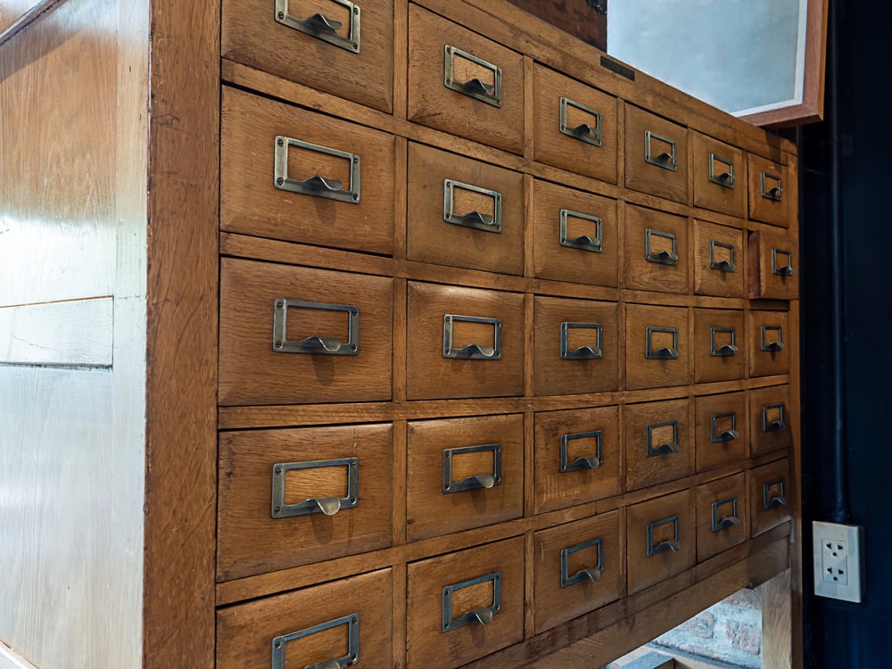 Some libraries keep their original card systems as backups or for historical collections, even though the majority of libraries have digital catalogs. A classification system created in 1876 and operating smoothly for more than a century is represented by these painstakingly arranged drawers full of index cards.