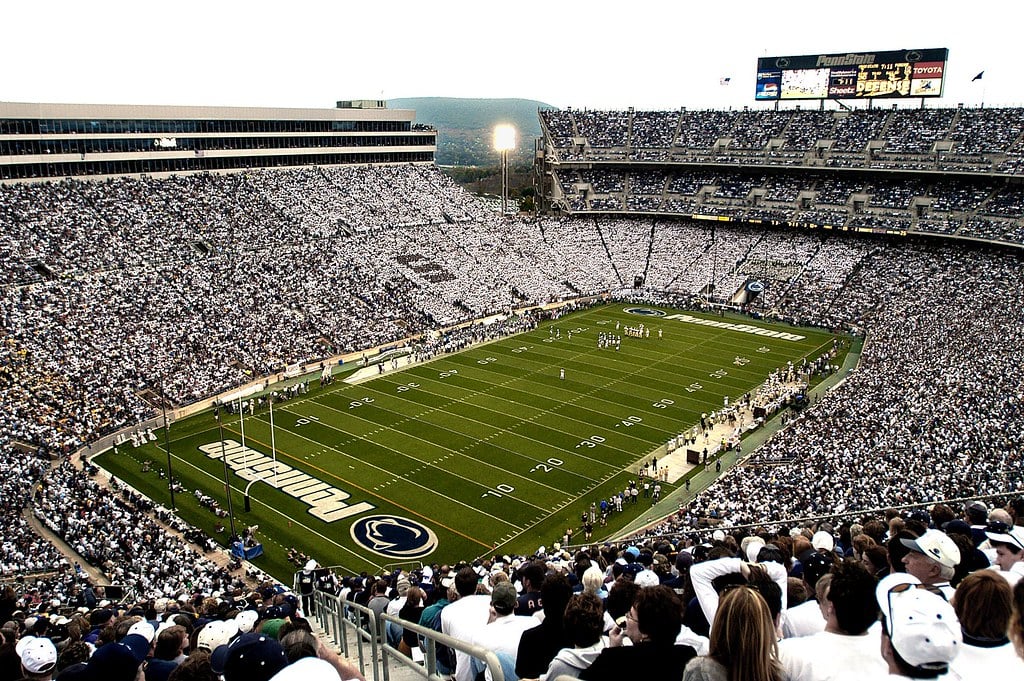 Penn State’s Beaver Stadium sits in the middle of nowhere — literally in the center of Pennsylvania — and that isolation makes the whole experience feel like a pilgrimage. On a whiteout game day, when 107,000 fans in white fill the seats, the visual is unlike anything in college sports.
