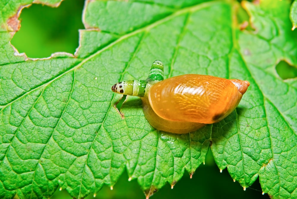 The Leucochloridium parasite turns ordinary snails into pulsating, colorful zombies that attract bird predators. After infecting a snail, the parasite grows into the snail’s eyestalks and makes them swell up with bright, pulsating bands of color.