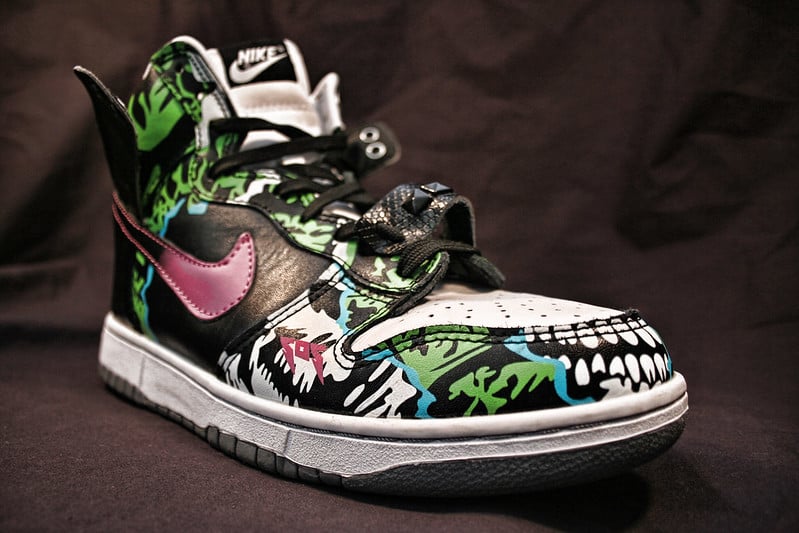 This horror movie-inspired design from 2007 was actually pulled from release due to licensing issues with the Nightmare on Elm Street franchise. Only sample pairs made it into the wild, making them incredibly rare among collectors. The red and green colorway with a distinctive striped pattern captures the essence of the iconic movie villain, and pairs have sold for over $25,000.