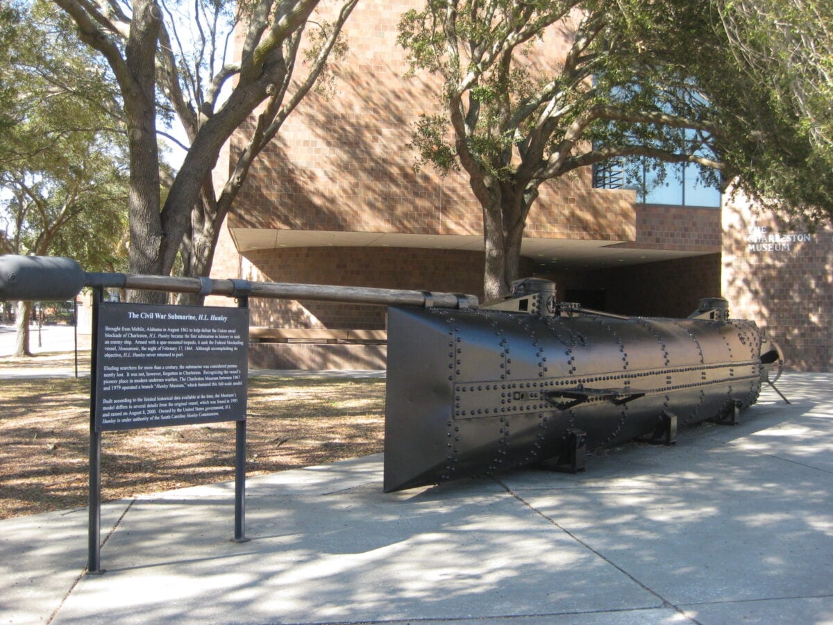 The H.L. Hunley wasn’t supposed to be photographed. Confederate authorities kept their experimental submarine project secret, yet someone managed to capture this image of the iron fish sitting in Charleston Harbor before its final, fatal mission.