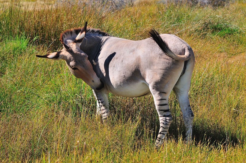 Each zonkey’s stripe pattern is unique, creating natural artwork that no two animals share. While they inherit the donkey’s calm personality, they also possess some of the zebra’s wariness, making them fascinating examples of how behavioral traits blend in hybrid offspring.