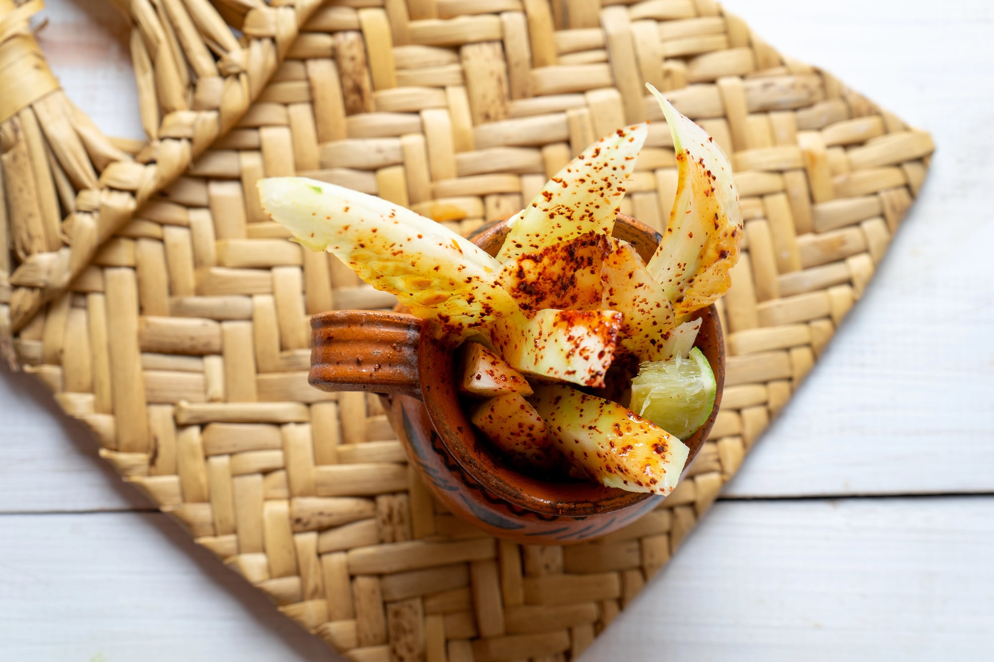 This refreshing combination appears in Mexican street food culture as a popular snack. Cucumber’s cooling properties balance lime’s acidity and chili powder’s heat, creating a perfect summer treat.