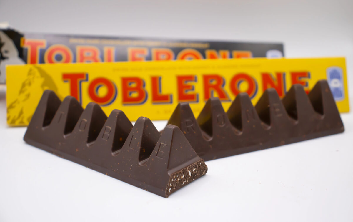 Toblerone’s triangular shape is often linked to the Matterhorn mountain in Switzerland. The company’s logo includes a hidden bear inside the mountain silhouette, referencing the city of Bern.