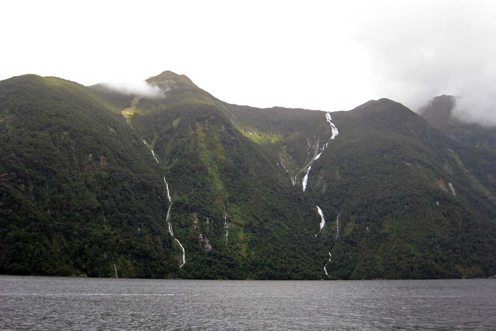 The falls are best experienced via boat tours through Doubtful Sound, where visitors can witness the water cascading directly into the dark waters of the fiord.