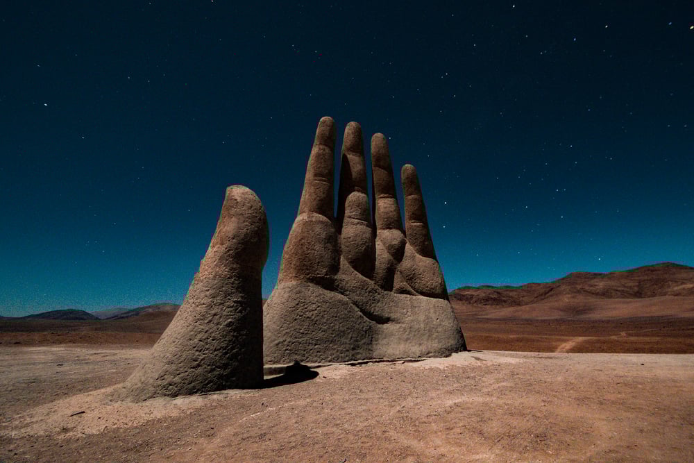 Mario picked the Atacama Desert on purpose because it’s such a hostile environment. He wanted people to feel small and vulnerable when they saw the hand, just like the people it honors felt during Chile’s dark political period.