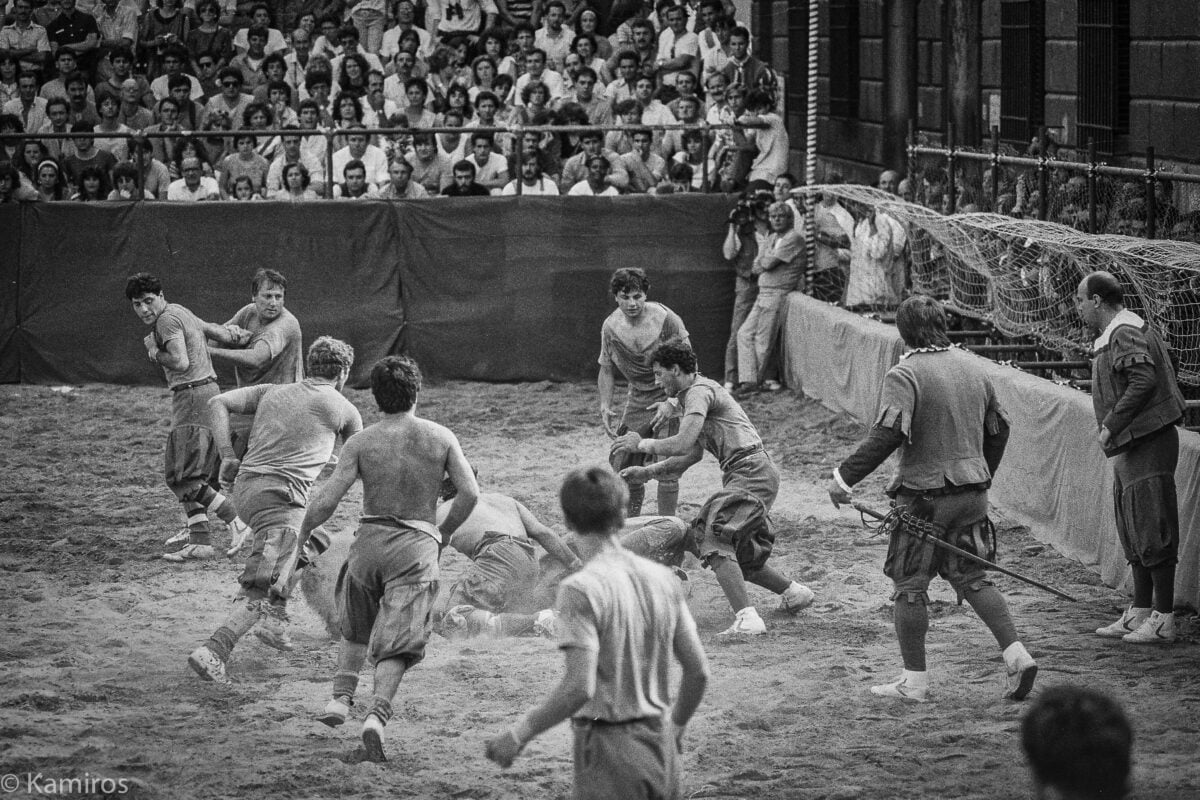 What’s remarkable is how organized the violence was — there were rules, referees, and specific techniques that players developed for both advancing the orb and incapacitating opponents, which meant that calcio storico required genuine athletic skill rather than just willingness to engage in mayhem (though willingness to engage in mayhem was certainly a prerequisite). The training was systematic too: teams would prepare for matches by practicing specific formations, coordinated attacks, and defensive strategies that anticipated what opponents might try.