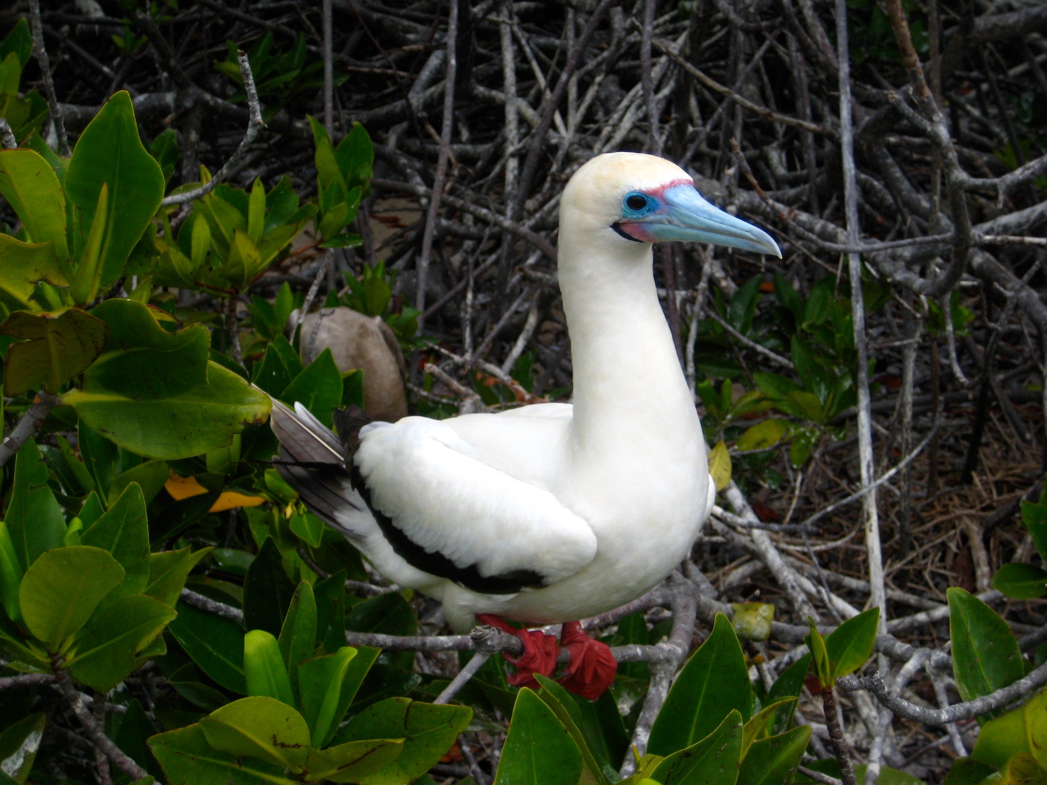 Unlike their ground-dwelling relatives, these boobies are comfortable roosting in trees when they do come ashore.