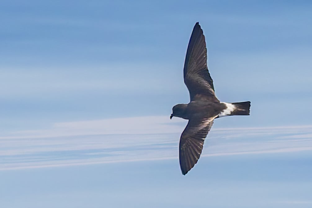 Band-rumped Storm-Petrels are deep-ocean specialists that rarely come within sight of land except during breeding season. They have an unusual feeding strategy, following whales and dolphins to catch small fish disturbed by these marine mammals.
