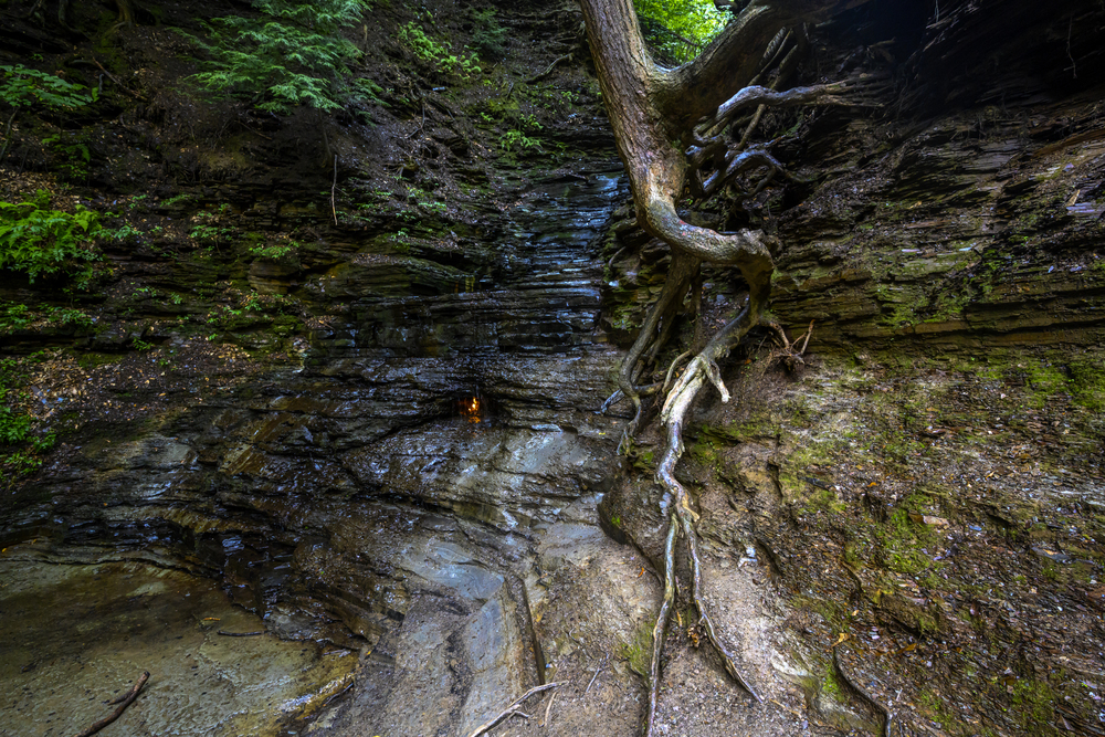 In Chestnut Ridge Park near Buffalo, New York, you’ll find a waterfall with a flame that burns behind it. The Eternal Flame Falls contains a natural gas leak that keeps a small flame lit most of the time, creating the surreal image of fire and water coexisting.