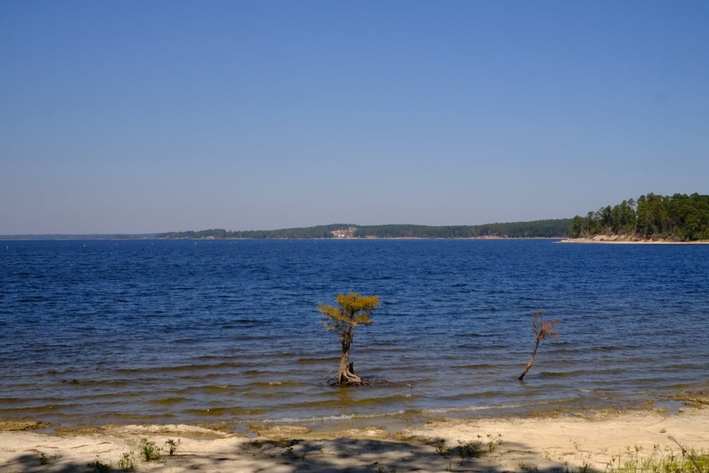 Toledo Bend Reservoir on the Texas-Louisiana border contains an underwater forest where trees continue to stand upright beneath the surface. When the reservoir was created in 1969, many areas weren’t logged before flooding.