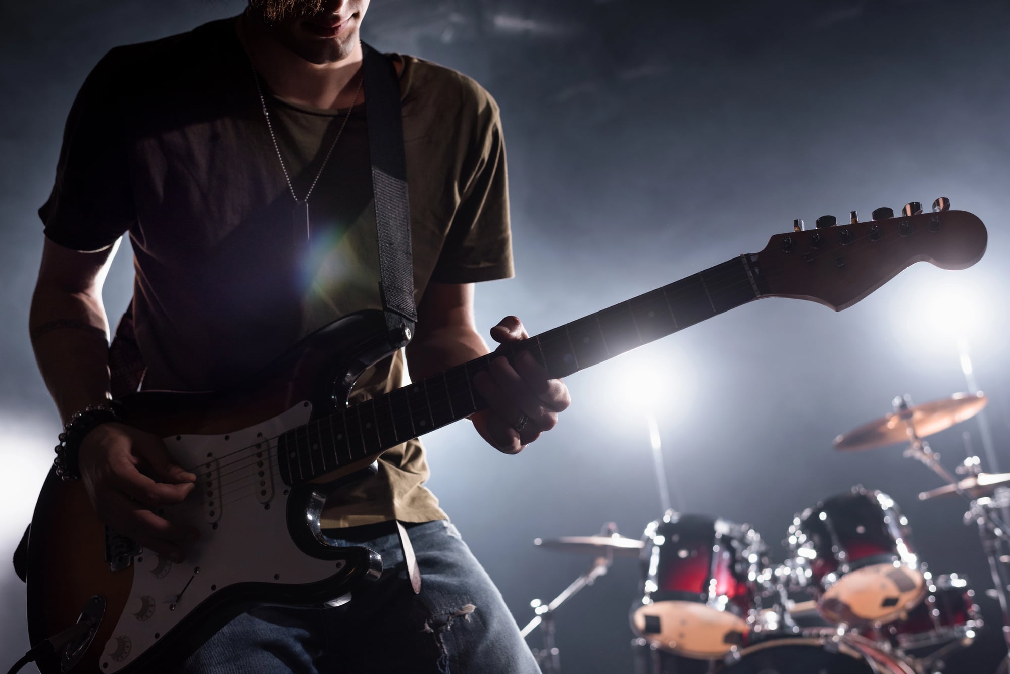 A musician smashing his instrument against the stage floor captured the raw energy of punk rock in a single frame. The photo’s composition and typography deliberately echoed Elvis Presley’s debut album, creating a visual statement about the destruction of rock’s past to make way for something new.