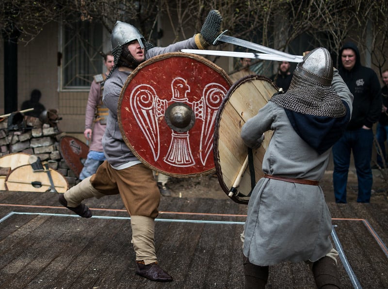 On a small island or designated area, ritualized combat was used to settle legal disputes. Swords and shields were used by the combatants, who fought until the first blood or death.