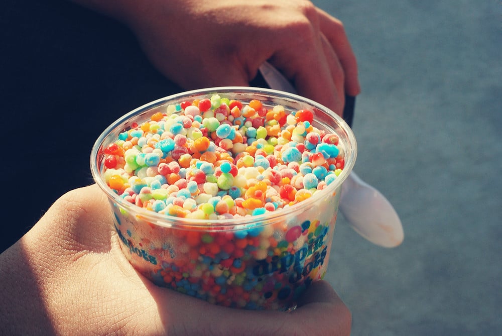 These tiny beads of flash-frozen ice cream were marketed as space-age refreshments and showed up in stadiums during the 1990s and early 2000s with their own dedicated kiosks. The super-cold pellets felt like eating frozen caviar made of ice cream, available in flavors that traditional scoops couldn’t match.