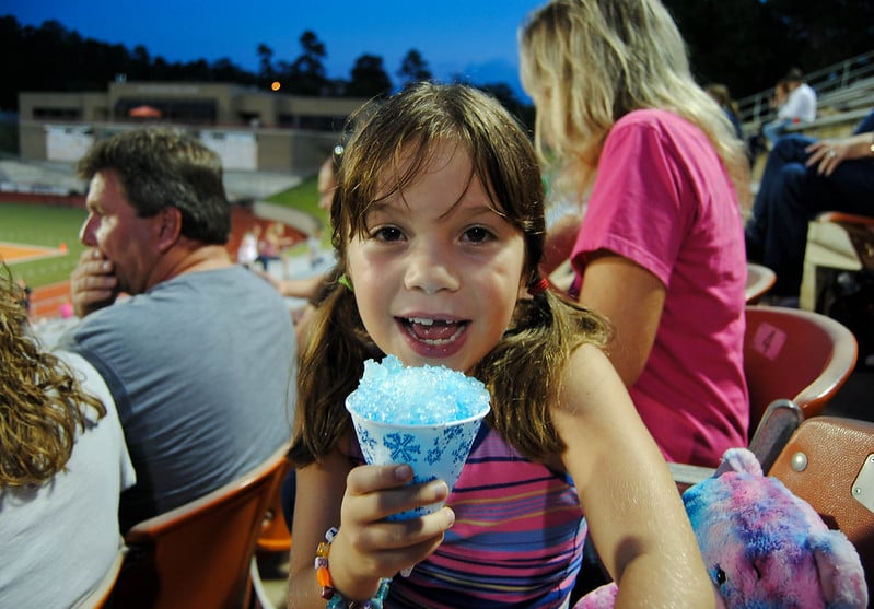 Proper stadium snow cones came in white paper cones, not plastic cups, and the ice was shaved so fine it melted on your tongue like winter itself. Vendors would shave the ice right in front of you from large blocks, then douse it with vivid syrups in cherry, blue raspberry, or lime.
